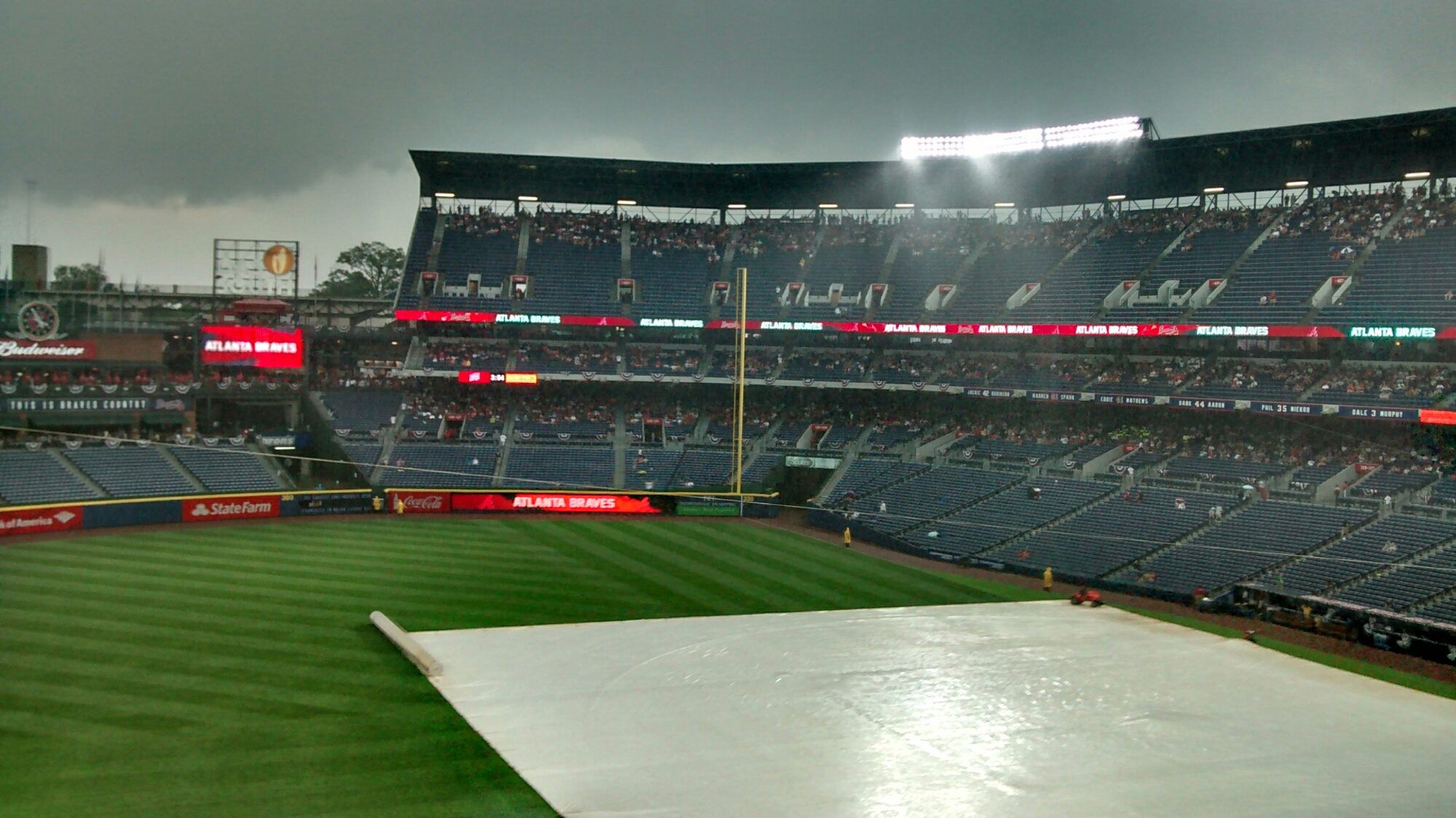 Like right now, I’m writing this while on a rain delay at the Braves game. Thankfully our seats are under, so we’re dry.